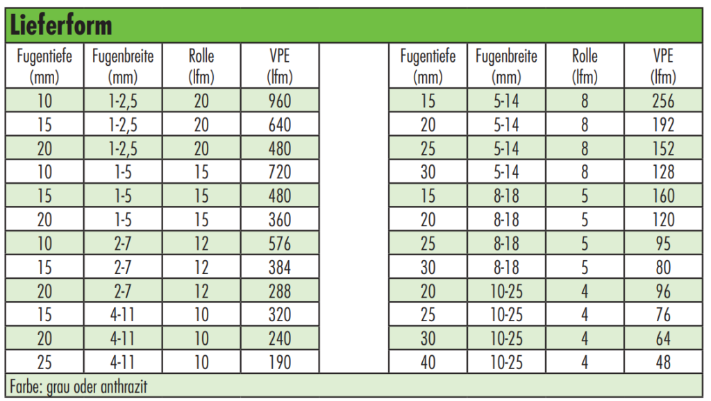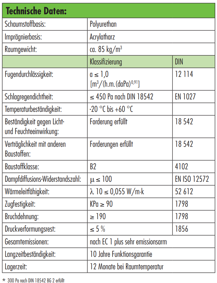 Produkteigenschaften von Fugendichtband K300 Plus